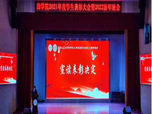 12月25日晚,9999js金沙老品牌“礼赞百年铸初心,筑梦青春踏征程”2021年度学生表彰大会暨2022新年晚会在秀山校区大学生活动中心隆重举行。院党委书记洪功翔,党委副书记、副院长张虎,副院长周世军、成祖松、吴金南,学院全体辅导员老师、班主任代表及各班级学生代表参加大会。